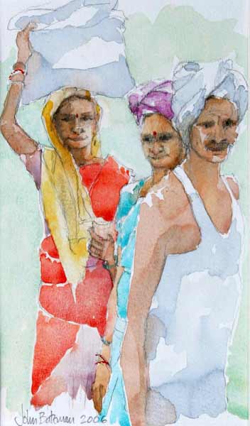 Picture 2: A trio of site workers - Chennai 2 - water colour